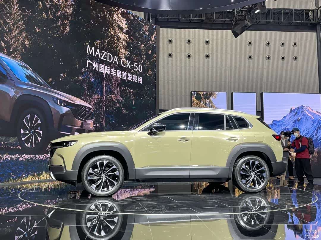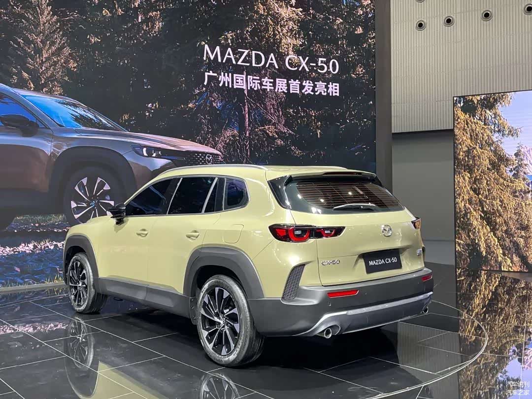 在2022广州车展上,长安马自达CX-50正式亮相,新车是南北马自达合并后推出的首款车型。外观方面,CX-50采用家族全新的设计语言,尺寸更大的前格栅结构不变但造型变得更为扁平,黑色的格栅边框向两侧延伸与大灯组相连,形成格栅与大灯一体化设计。此外,前保险杠两侧的导风槽和前唇采用的银色格栅,使得新车看上去十分硬朗。