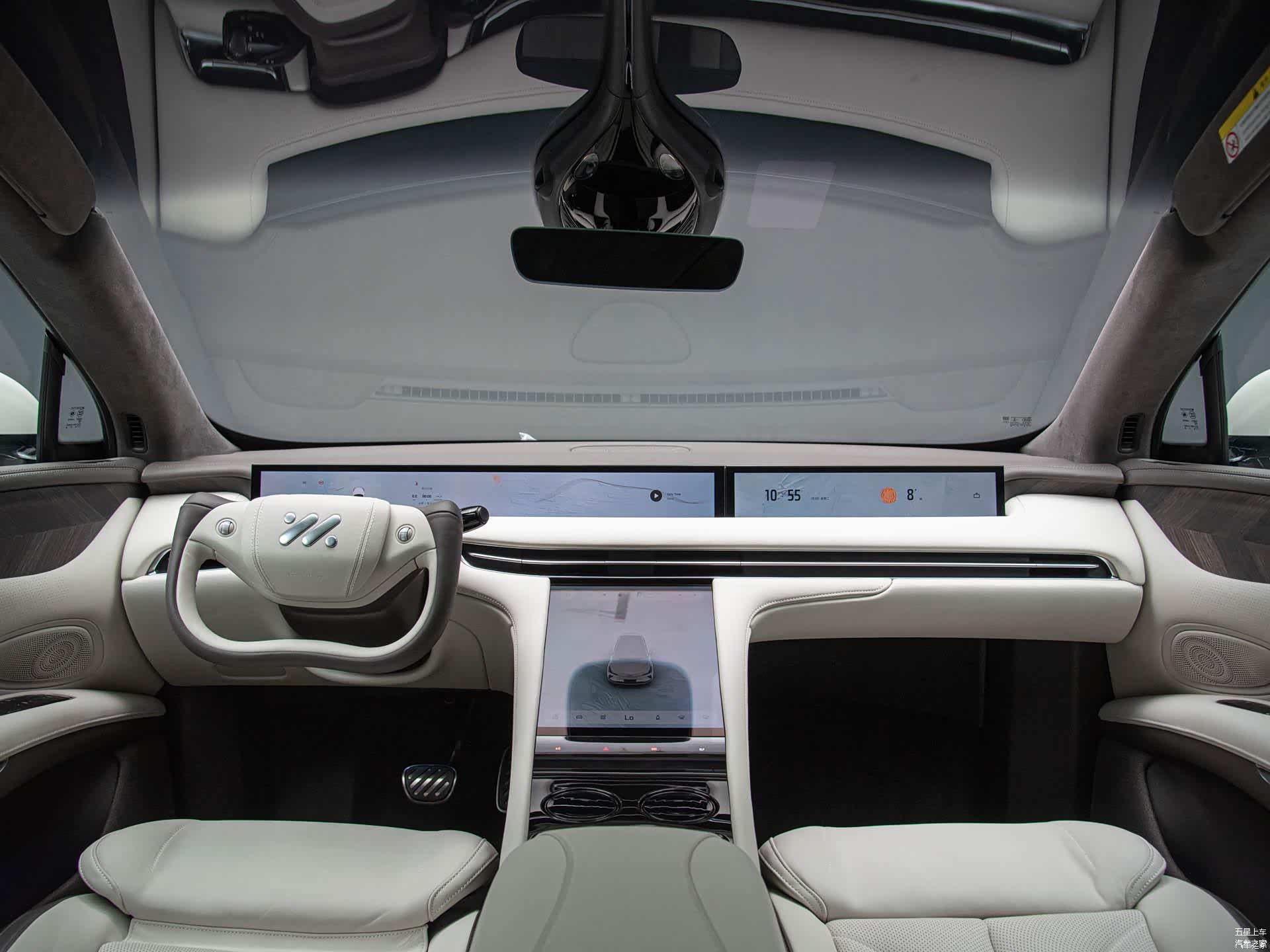 智己LS7在2022广州车展亮相。此前新车已经首发并开启预订。新车是智己汽车的第二款车型,定位中大型纯电动SUV,主打“大五座”,并有望于2023年2月中旬正式上市。外观来看,新车采用了封闭式的前脸设计,两侧的前大灯组呈现“L”样式,内部配备了LED灯眉。此外,新车前包围采用了三组通风开口设计,两侧的开口中配有LED日间行车灯,下方的贯穿式通风口则增加了横向视觉宽度。 内饰方面,新车将采用液晶仪表盘+中控屏+副驾显示屏的三联屏设计,该巨幅屏幕采用了窄边框设计,并且还拥有升降功能,再搭配官方称为的“半辐方向盘”,以及中央通道区域内嵌式的触摸液晶显示面板,所有的组合让新车拥有极佳的科技感。