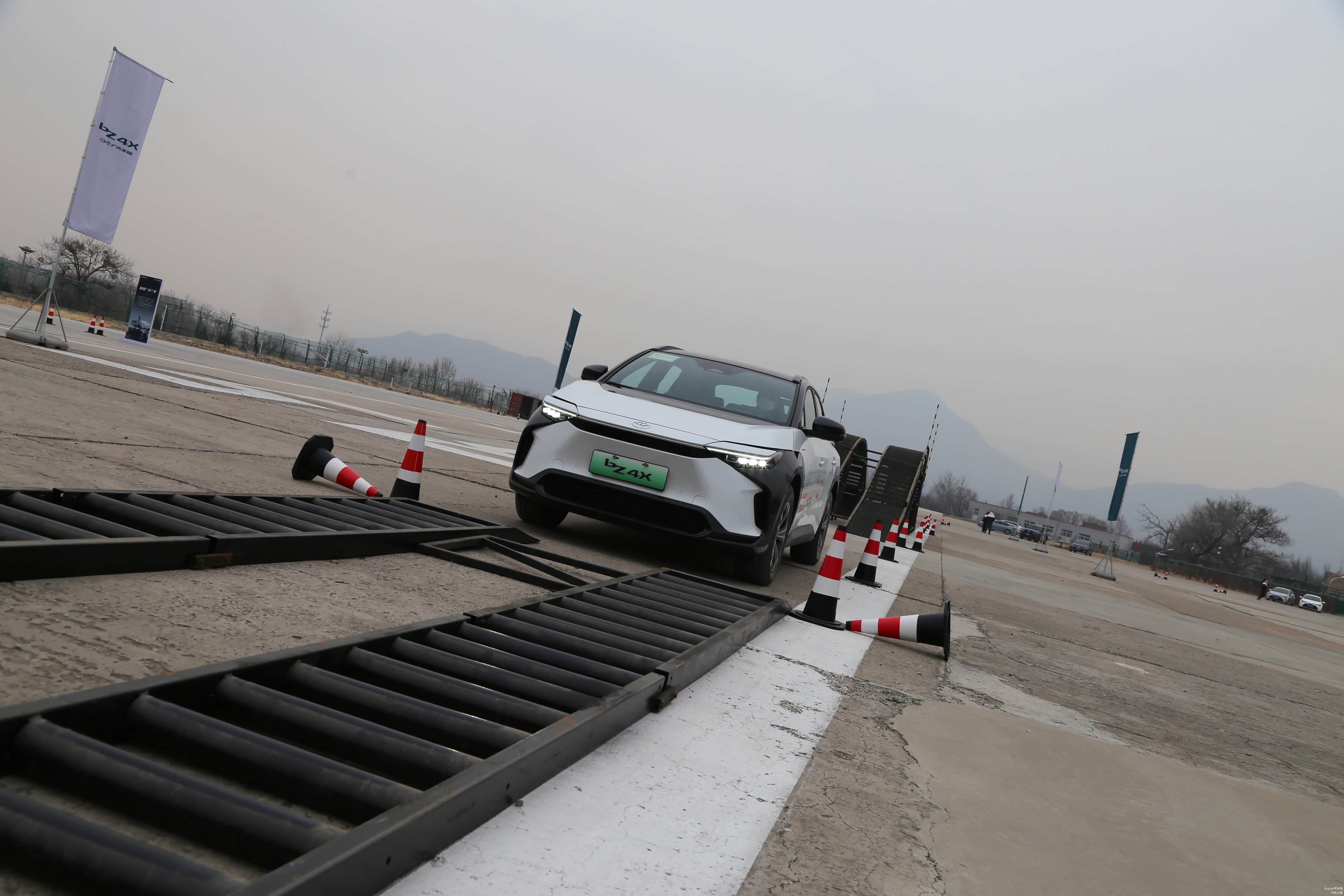 试驾车型搭载前后双电机,综合输出功率达到了160千瓦,而本次的场地试驾可分为两个区域,分别为越野和城市,前者包括了直线加速、高速变道以及麋鹿测试等,作为一款纯电产品,广汽丰田bZ4X并没有让我们失望,起步十分轻快,即使车内坐满四人,也依然能高手到强烈的推背感,让人不得不佩服双电机的强大。