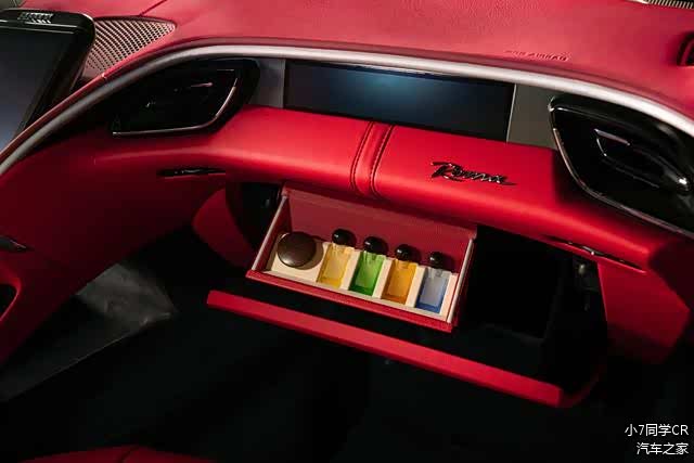 内饰采用中国红色配色,同时细节布局还点缀有中国风设计元素。