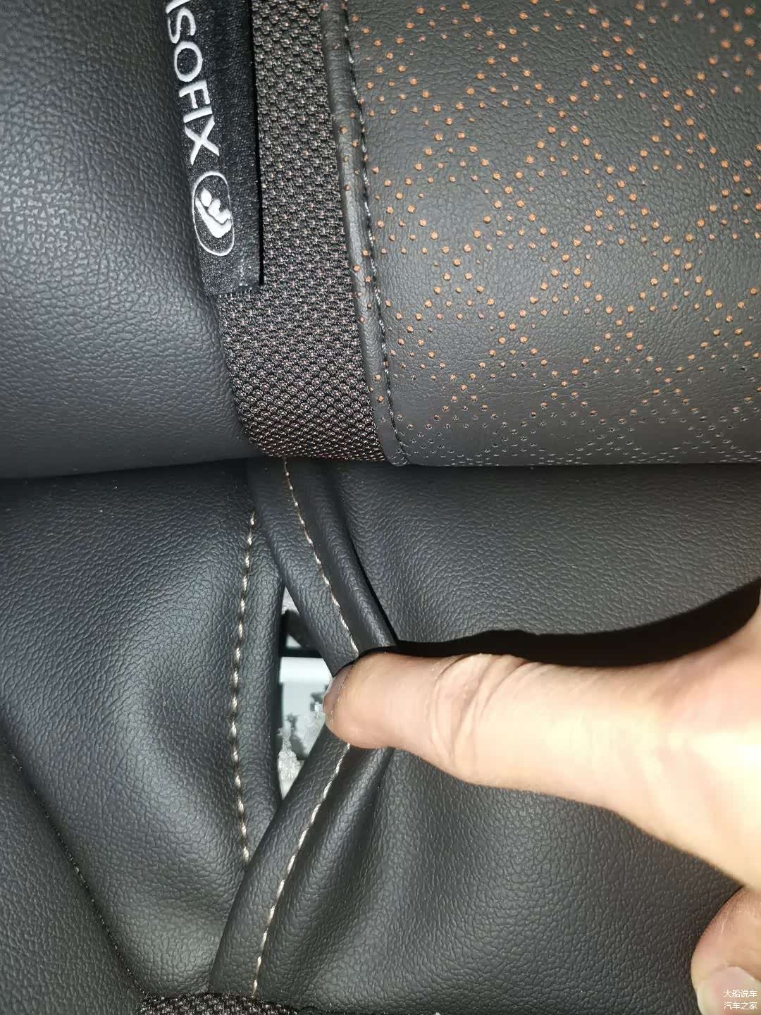 这里要严重吐槽别克的设计,那两个 ISOFIX 的提示标签设计的太不合理了,不指望它像下图这样,在这里增加一个硬塑料的接口,但你明明接口在下边,为何非要把标签设计在上边,严重误导消费者。