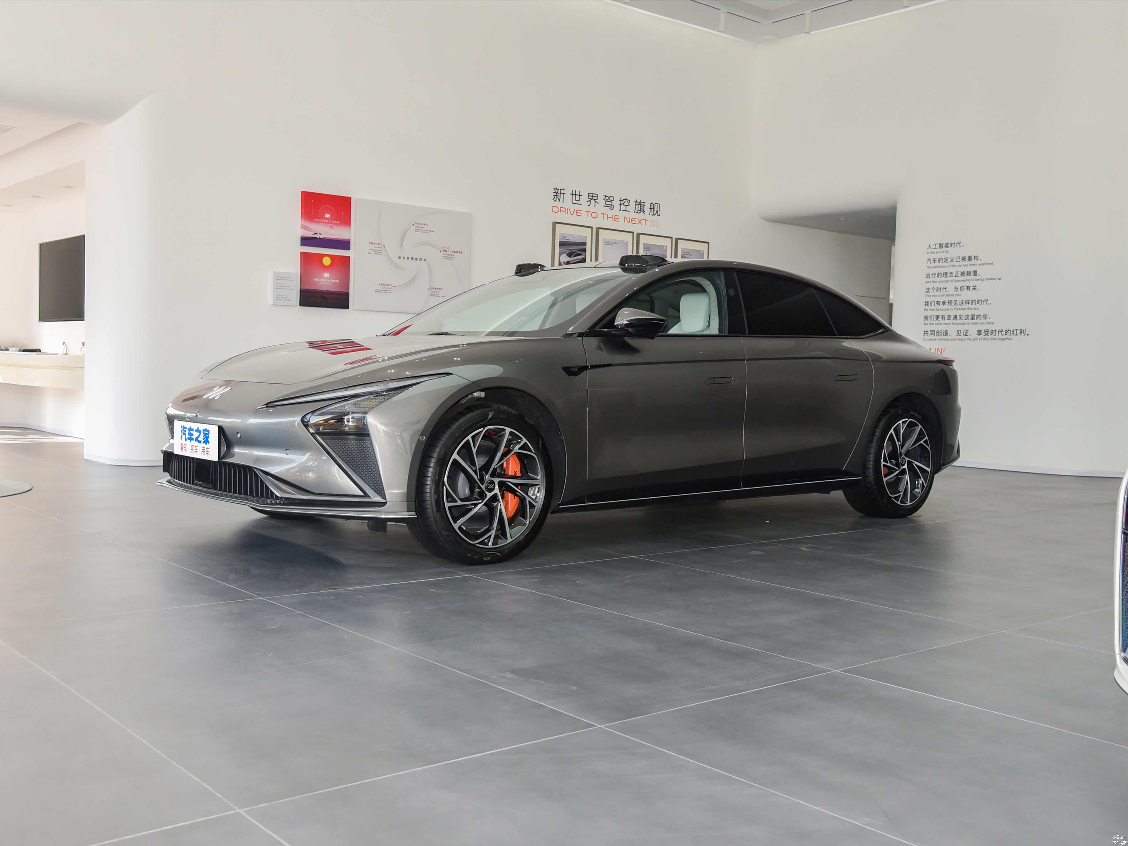 四驱版本的综合最大功率为445kW,峰值扭矩730N·m,百公里加速时间为3.87秒,电池组的容量同样是90kWh,CLTC工况续航里程为615km,而且支持后轮转向功能。