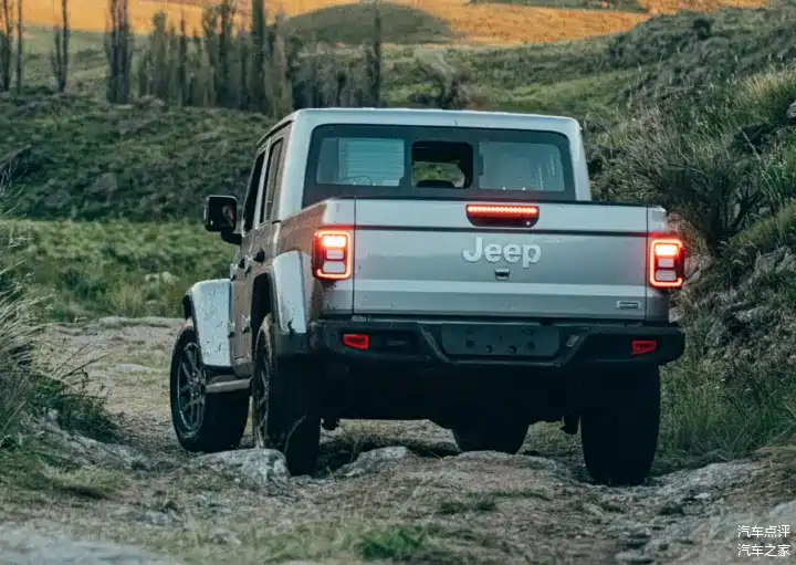尾部方面,Jeep角斗士采用拼色处理的竖置尾灯组,看着很有质感。