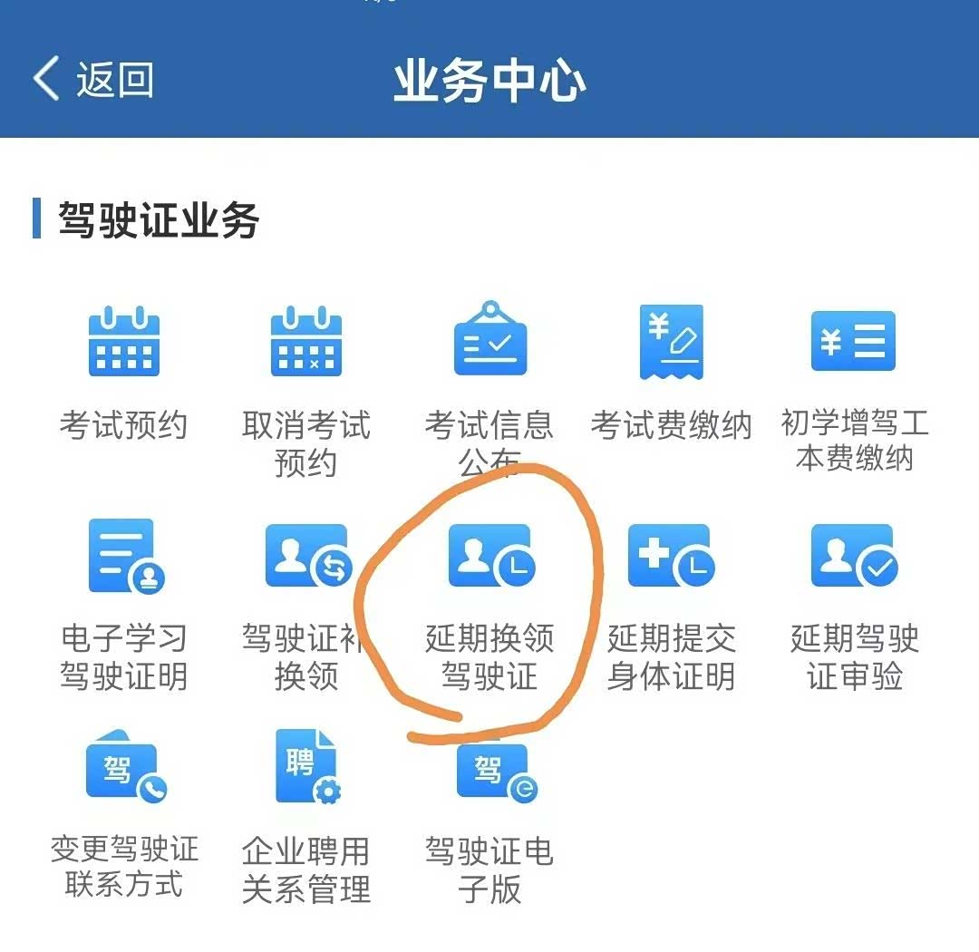 滑动找到:驾驶证业务--延期换领驾驶证。
