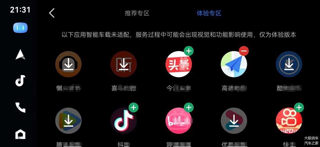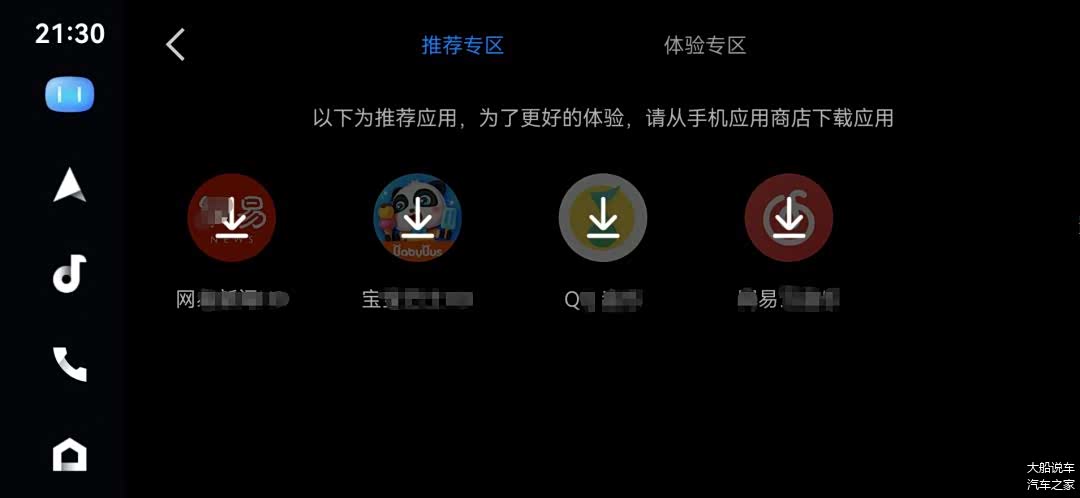 体验专区有 10 个,里边竟然有竞品高德地图,格局打开了一些。之前没发现高德地图,改天去试试,可以的话,以后就用 CarLife 调用高德地图来导航。