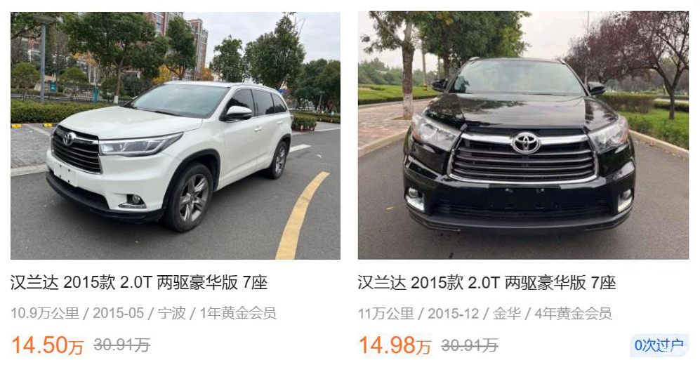 根据我们调查情况来看,第三代汉兰达二手车源十分丰富,从2015款到2021款都有,其中,2015款汉兰达即便里程有10万公里,二手车卖价也要15万元左右,对比新车价格,7年保值率依旧超过50%。另外,同样是2015款车型,里程数在6-8万公里左右,二手车价格会相对较高,价格在17万元左右,而一些车龄3-5年的汉兰达,二手车价普遍会超过20万元,5年保值率几乎都在70%以上。另外,现款汉兰达由于整体售价较高,因此即便有二手车,售价也几乎在30万元左右。