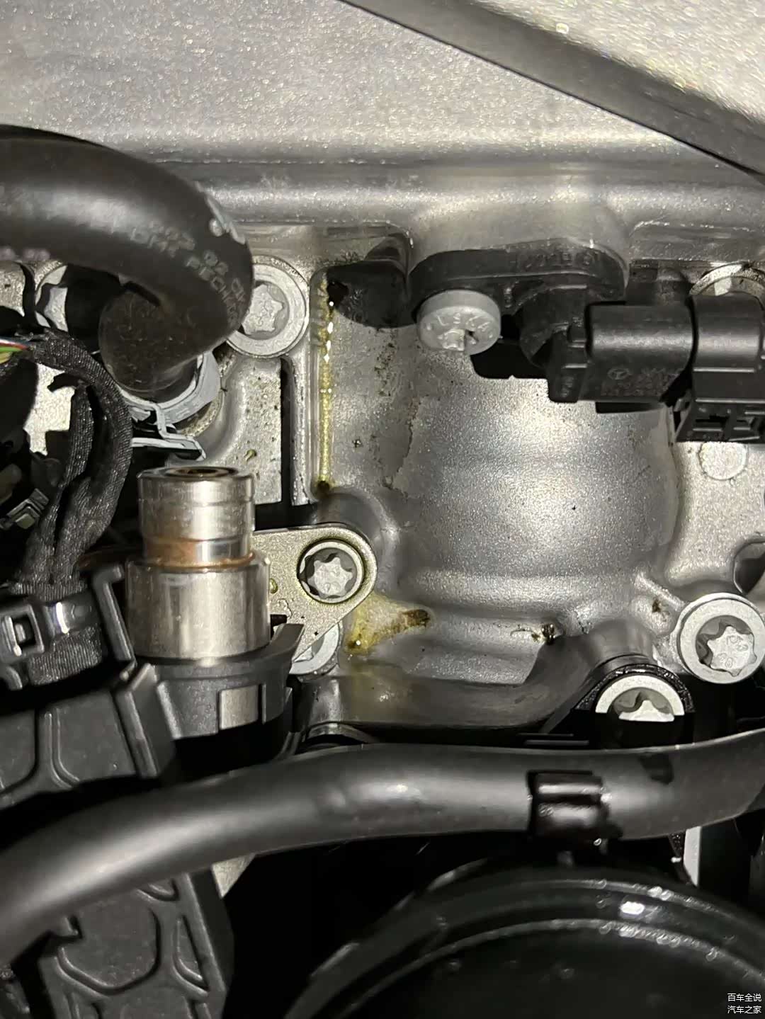 当时并没有太在意,家里也是急需用车,所以只去4S店里加注了一升机油就走了。结果才过了一个半月,到十月底的时候,无意间发现缸体表面竟然有渗机油的情况,并且查了一下机油液位,发现机油刻度尺在最大值和最小值的中间,这才一个半月就少了0.5L的机油,就算是之前的奥迪宝马烧机油,速度也没有这么快,所以很有可能是个大问题。