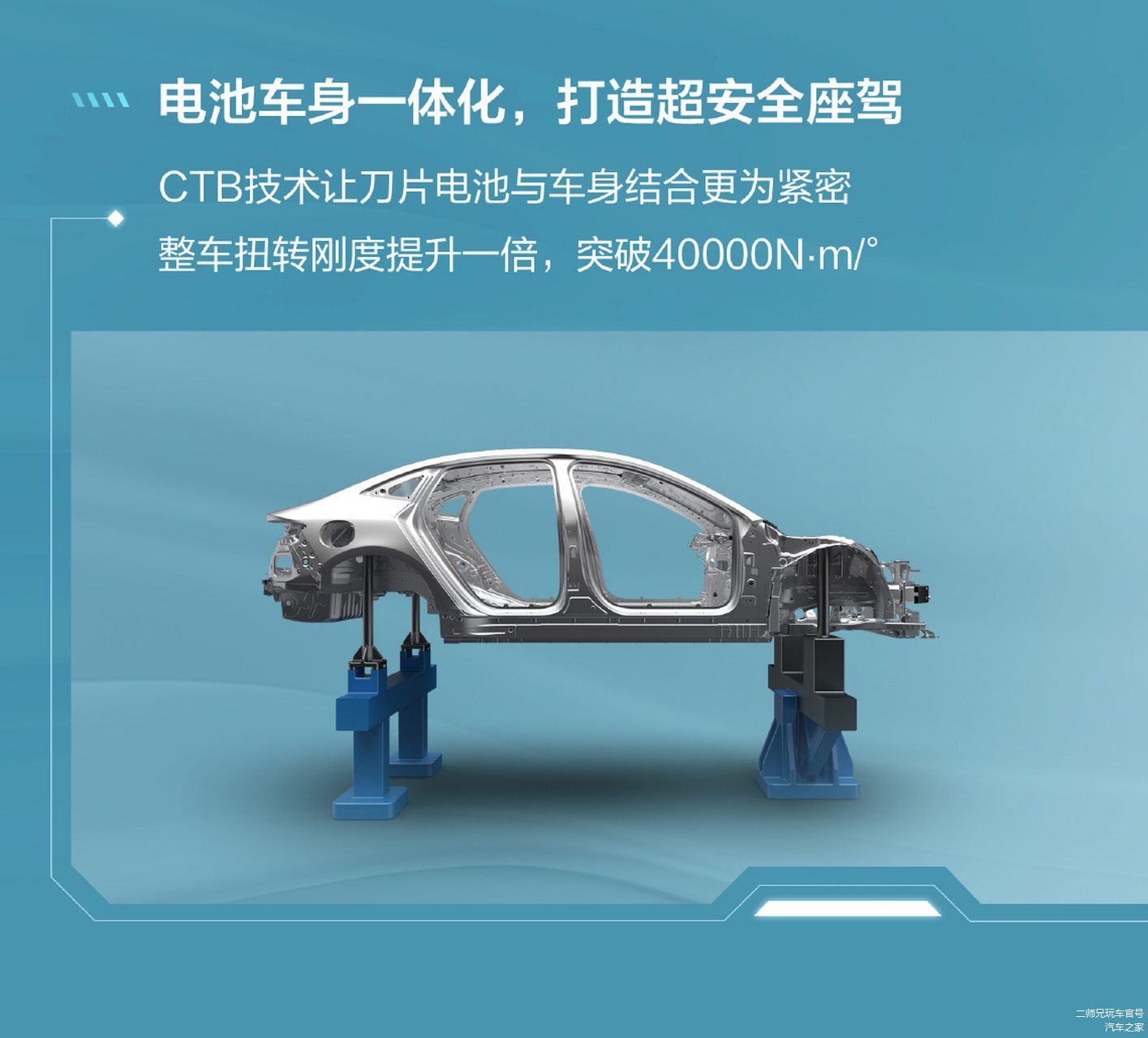 相较于传统的CTP电池,CTB电池车身一体化技术,不仅可以进一步降低重心、提升空间利用率,同时也为车辆结构带来了更高的扭转刚度。