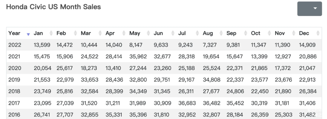 2017年17.6万辆,2018年21.8万辆,2019年、2020年就已经月均销量破两万了。在十几万价格区间里,本就车型种类众多,新能源车还占据着政策优势,思域还能月销两万,靠的全是实力。