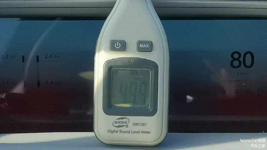 我们选择中国一级公路铺装标准的平直干燥柏油路,在关闭车上所有车门、车窗以及所有用电系统——例如空调和多媒体的前提下,分别测试在40km/h、60km/h和80km/h定速巡航状态下车内的最低噪音,并计算出三个速段测试数据的平均值,以此作为最终成绩。