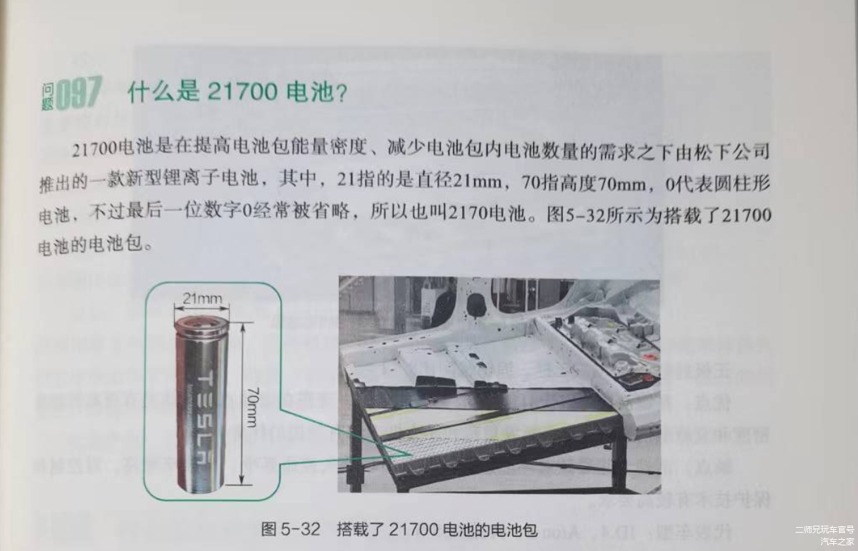 比如在动力电池组这一章节,这本书的编辑就配上了21700电池的照片,让我很直观地知道了特斯拉采用了什么电池组,到底长啥样,有哪些特点,如此一来,我到特斯拉门店咨询时候,似乎心里也更有底了一些。