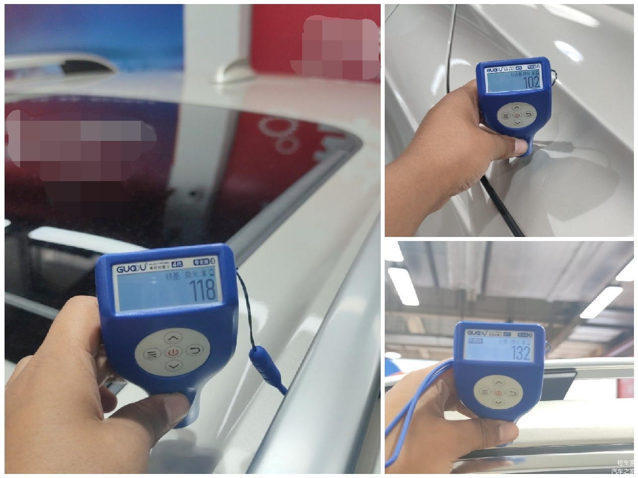 因此我在掏出工具后就绕车走了一圈,在经过我仔细的排查后,发现全车的数值基本都在120um左右,我又用手摸了一下边沿的位置,都是非常圆滑的,一点都不刺手,那就说明全车还是原厂漆的状态,可以初步判断它没有受过重大事故了。