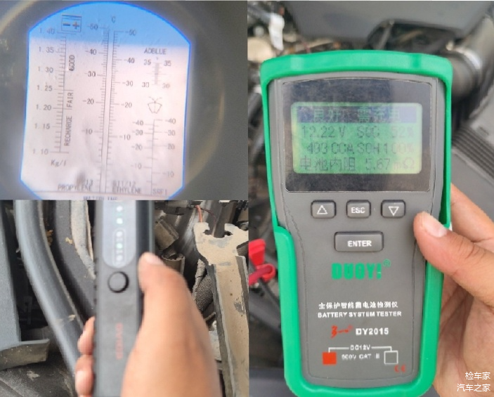 最后是检查油液的使用情况,防冻液冰点正常,电瓶亏电,但是正常启动没有问题,可能是由于长期停放导致的,后期感觉启动有些费力的时候再更换也不迟。到这里机舱方面的检测也就结束了,下面是车内的检测。