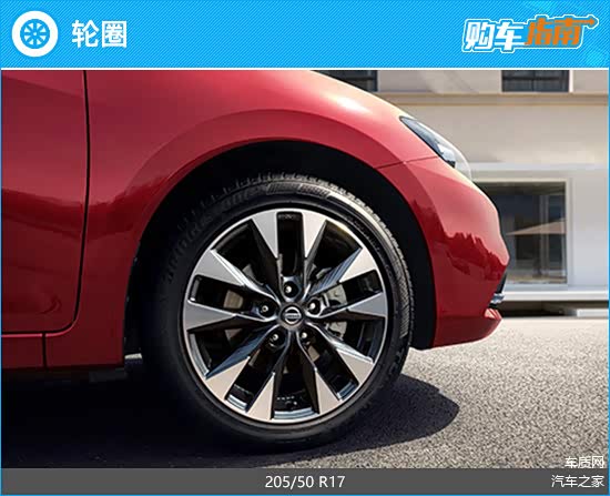2023款骐达TIIDA针对不同车型提供了两种规格的轮圈,入门以及中配车型搭载16英寸铝合金轮圈,匹配规格为195/60 R16的轮胎;顶配车型搭载17英寸多辐双色轮圈,样式时尚运动,和整车展现的活力感相得益彰,轮胎规格为205/50 R17。