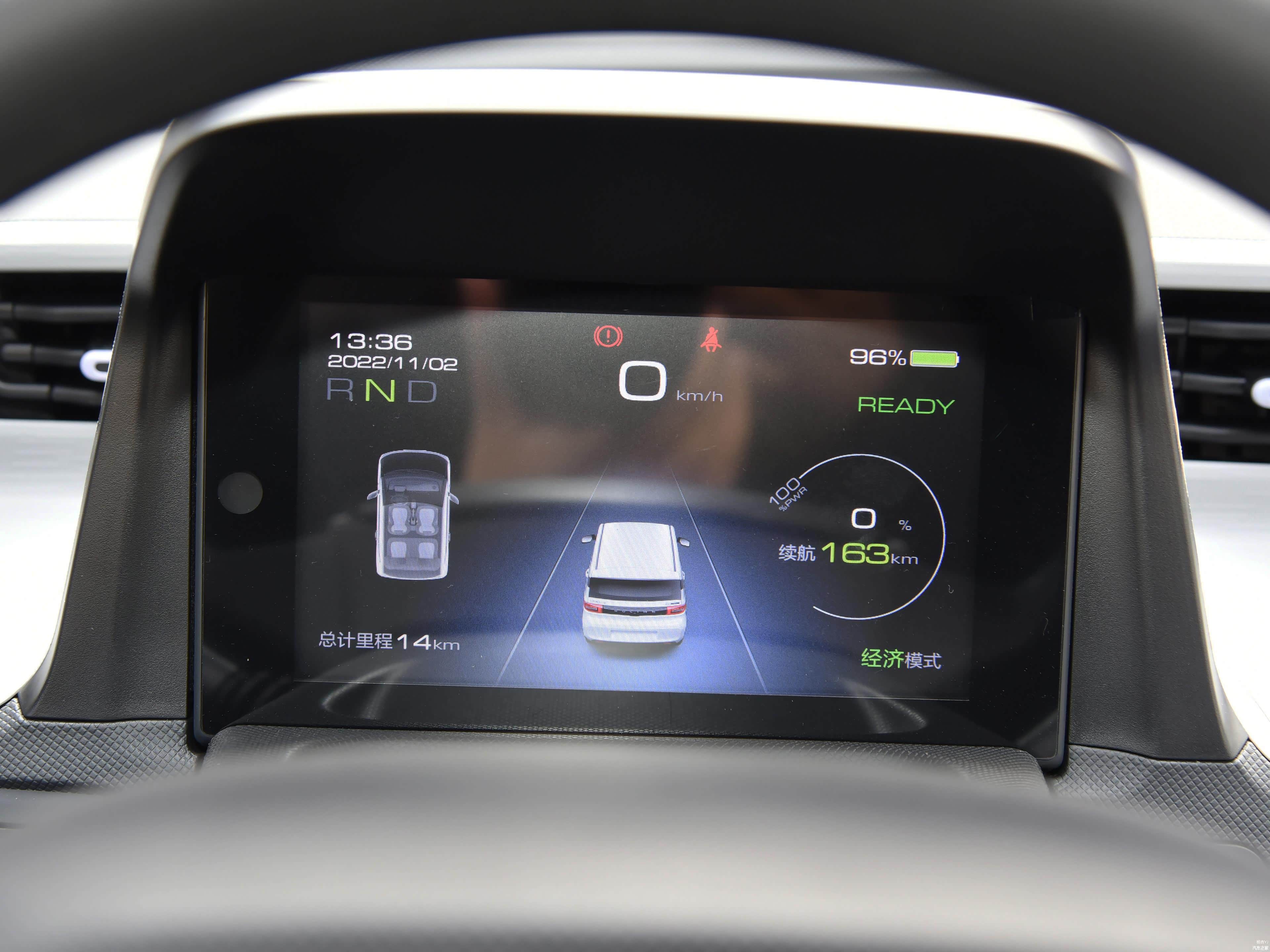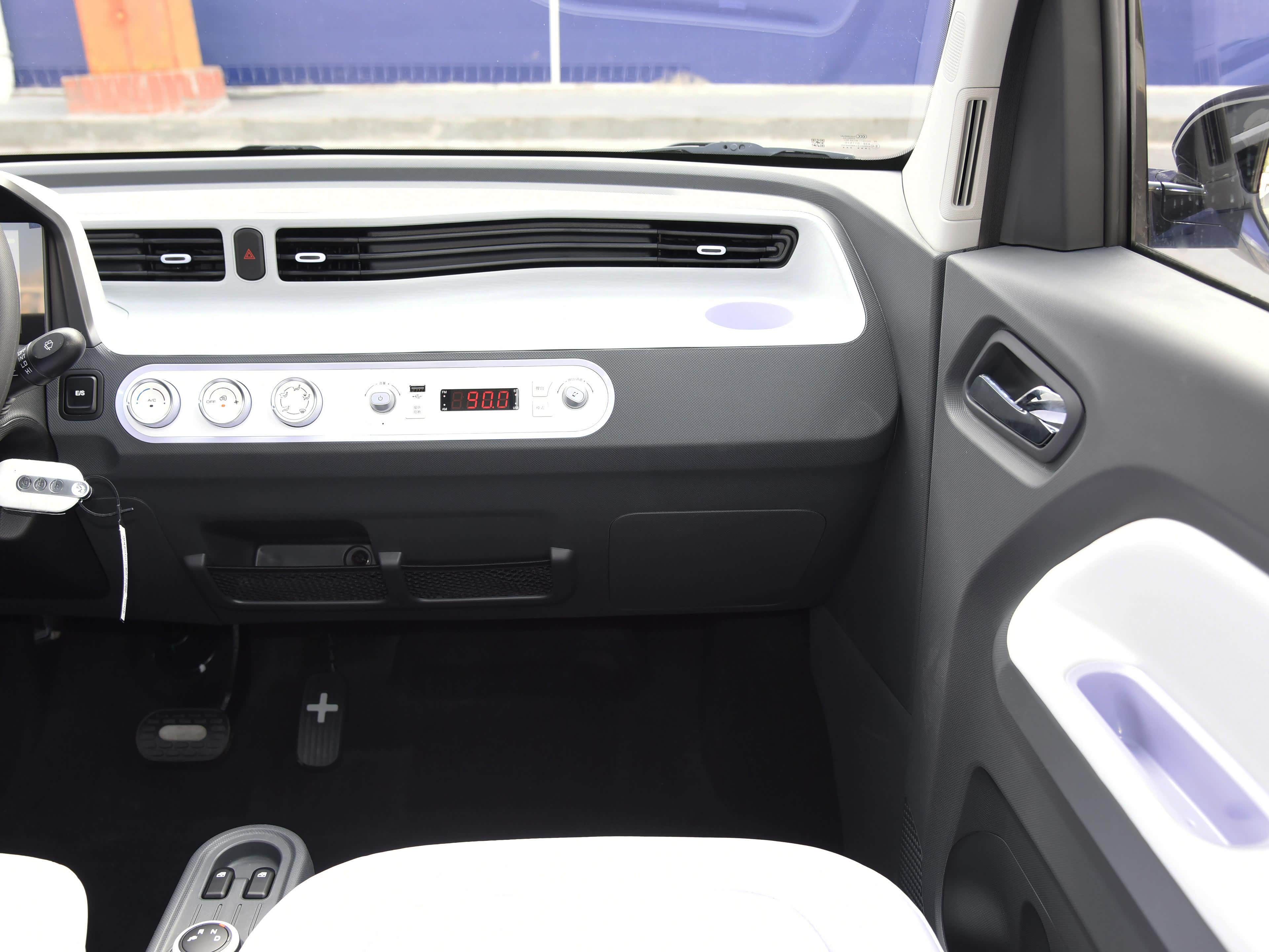 内饰相对简单,五菱宏光MINIEV没有配备中央控制屏幕,使用液晶仪表,空调出风口为贯穿式设计,空调控制区域三个旋钮操作,换挡方式也是旋钮设计,使车内空间更大。
