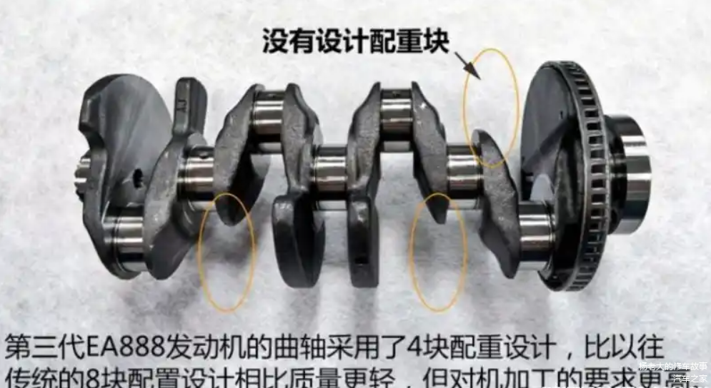 并且三代EA888做了大量的改进,曲轴8块配重变成4块配重,缸体更轻。水道也做了调整,散热更好。无论是性能还是震动表现,都更好了。这都是二代EA888,天生就没有的。