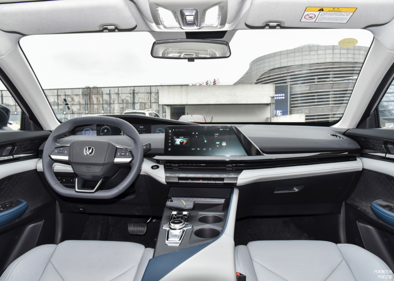 UNI-V iDD主要的变化就是搭载了长安旗下iDD插电混动系统,这套系统由蓝鲸NE1.5T发动机、蓝鲸三离合电驱变速器、大容量动力电池以及蓝鲸iDD电控系统4单元组成。其余除了在车身颜色新增专属蓝灰配色和车身部分新增iDD标识以外没有任何变化。车身尺寸长宽高仍然是4695*1838*1435mm,轴距2750mm。