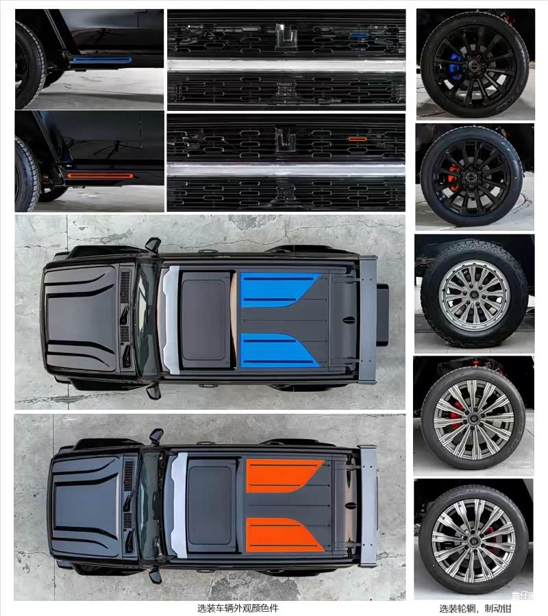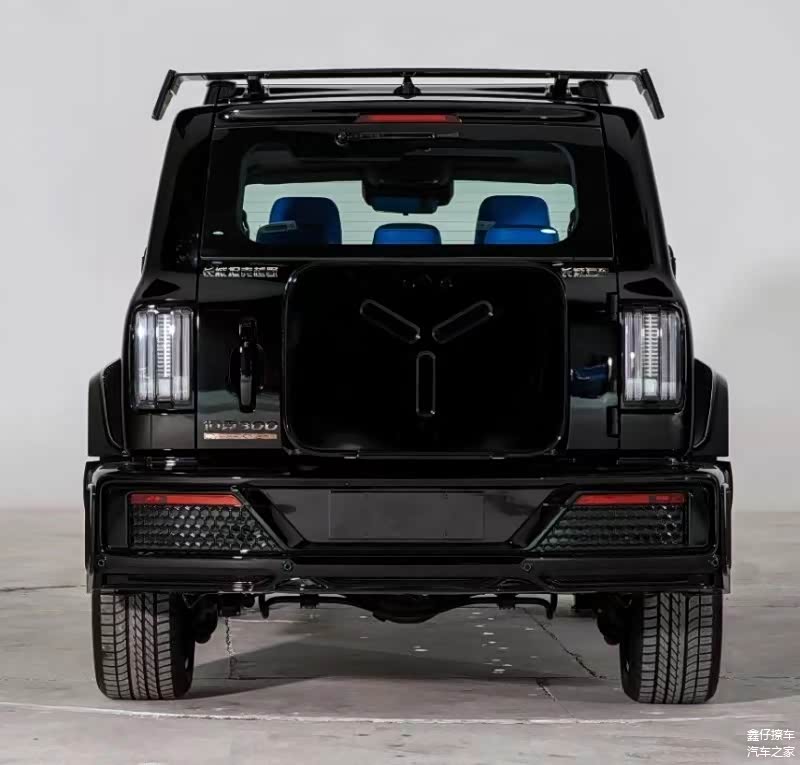 车顶配备尾翼,外挂式的“小背包”也带有Y字形压印,车辆前后轮拱则加装了宽体,看起来更加粗犷有力。车身侧面,赛博骑士依然采用四开门加侧开式尾门设计,采用大尺寸轮毂搭配低扁平比轮胎,更适合在城市驾驶。