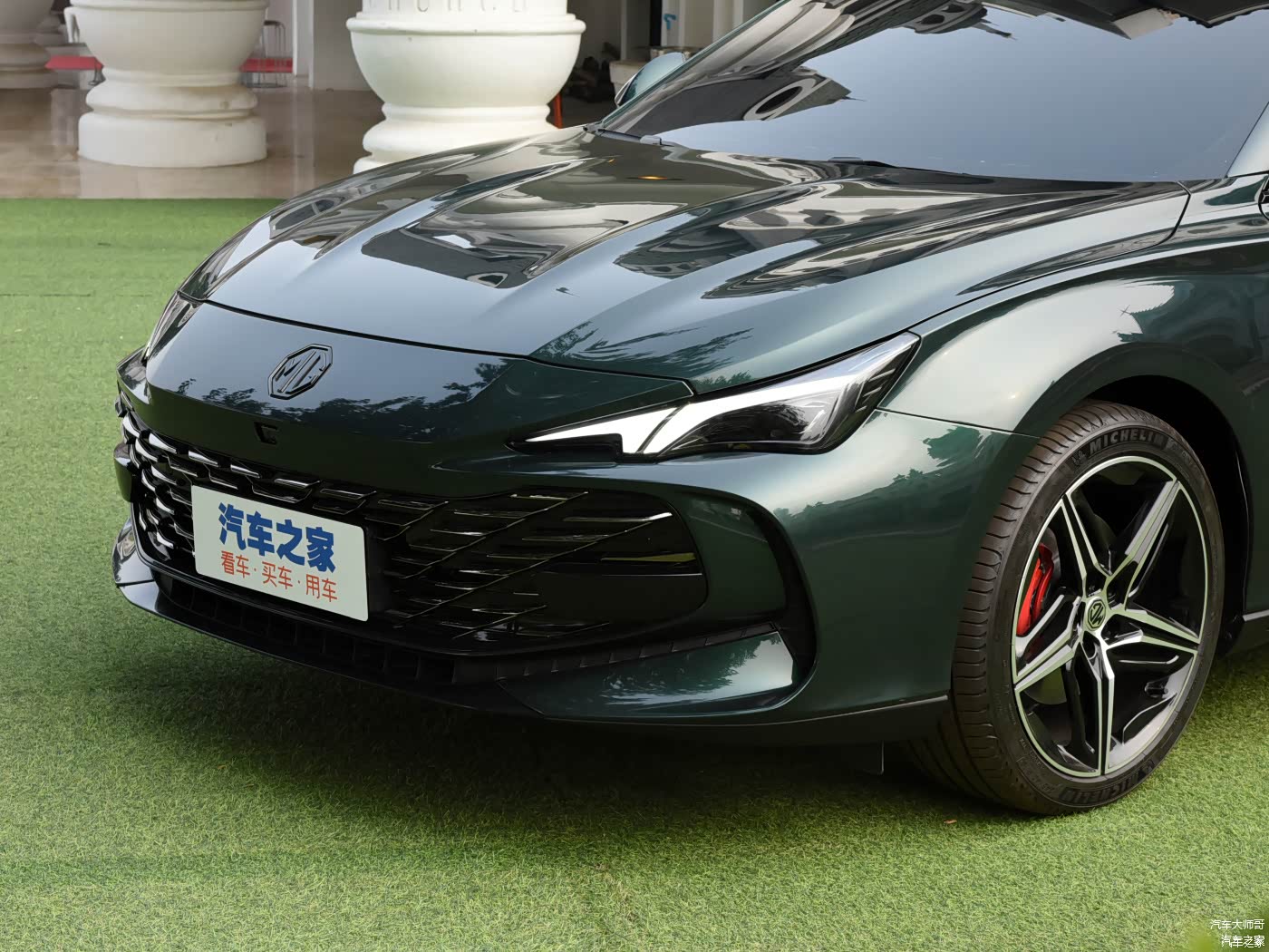 外观设计上,在我们看来全新的MG7的整车外观设计还是非常成功的,至少亮相至今还没有人因为它的外观设计而说它难看。几乎占满前脸的进气格栅、俯冲的狩猎姿态以及潇洒的大溜背都令MG7散发出强烈的侵略性。此外,强体量感的引擎盖以及优雅的曲线快速下坠并覆盖整个车头,营造出低趴和俯冲感强烈的形态,犹如猫科动物般灵动敏捷,左右两侧造型犀利的前大灯与棱角分明的前包围则为前脸带来更强的运动气息。