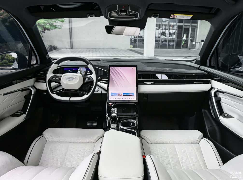 内饰来看,博越L采用了全新的设计语言,主要是以科技精致的风格为主,四幅式方向盘,全液晶仪表盘,还有13.2的中控大屏,内置有吉利银河的车机系统,采用了高通8155的芯片,响应速度、流畅度都达到了主流的水平。