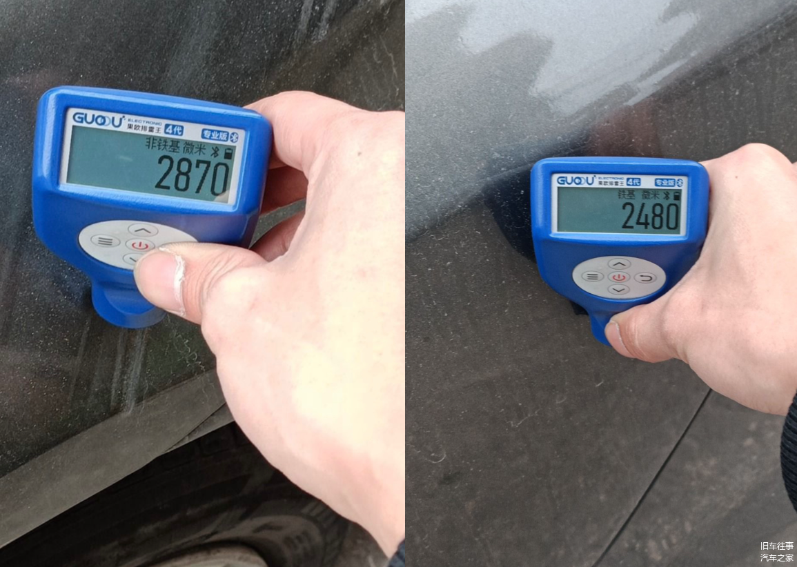 老规矩,还是先检查一遍外观覆盖件,一圈打下来,好家伙,全车钣金喷漆,漆膜仪数值也是相当高,最高的已经达到2000多微米。