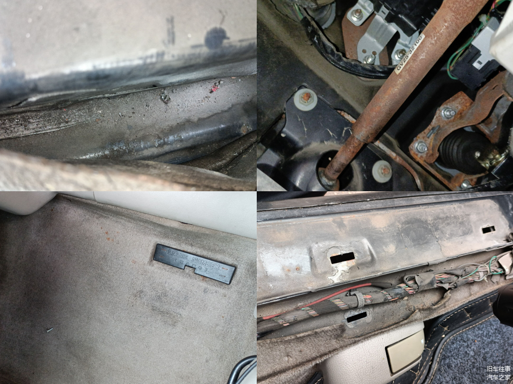 好家伙,这不看不知道,一看吓一跳。检查内饰细节,发现内饰还进过水,方向管柱锈蚀,门槛线束存在泥沙水痕,地毯存在霉斑水渍!也不知道这辆老马6经历了什么了,事故,火烧,水泡,调表,目前看下里,差个火烧就齐全了。
