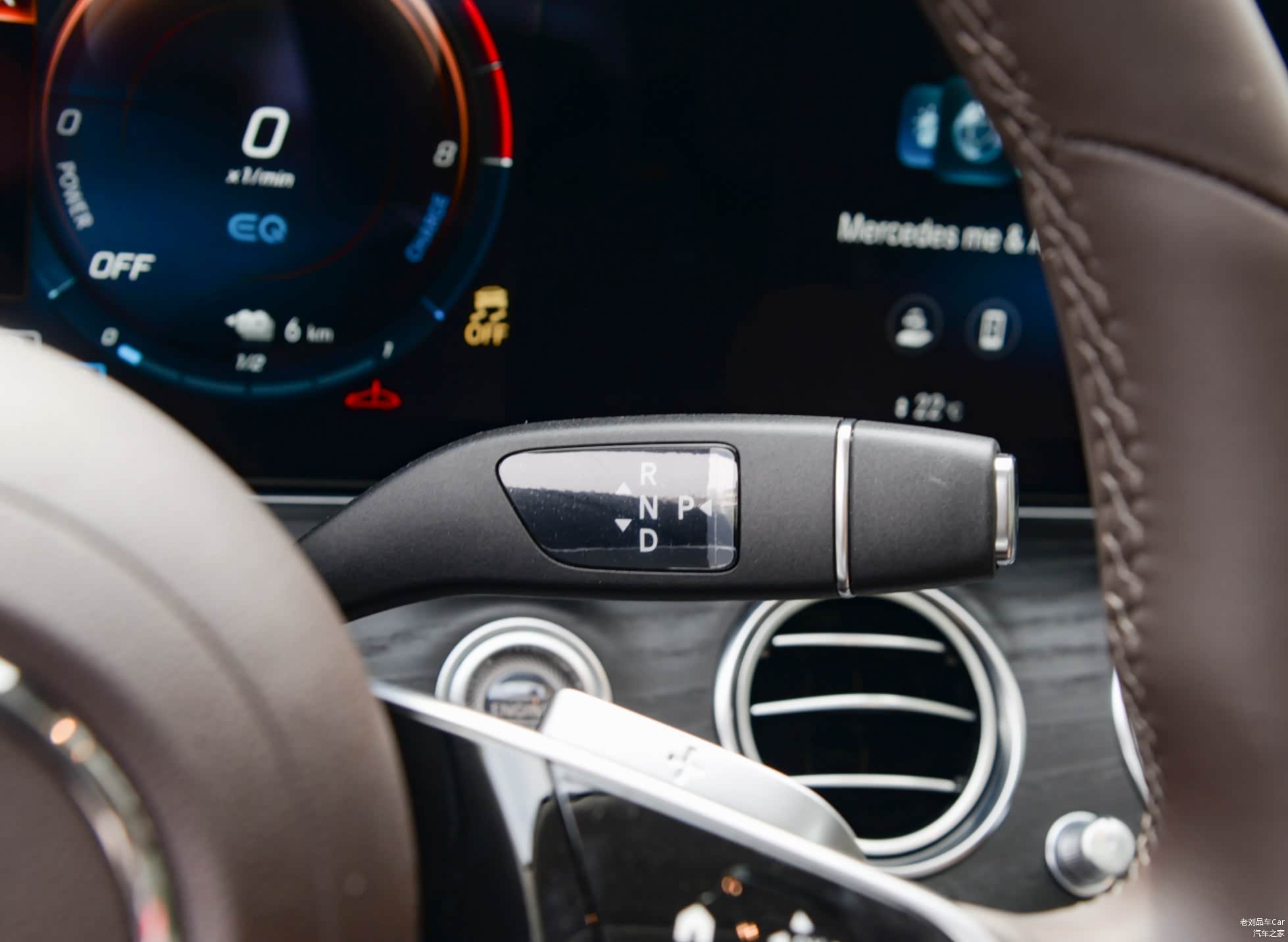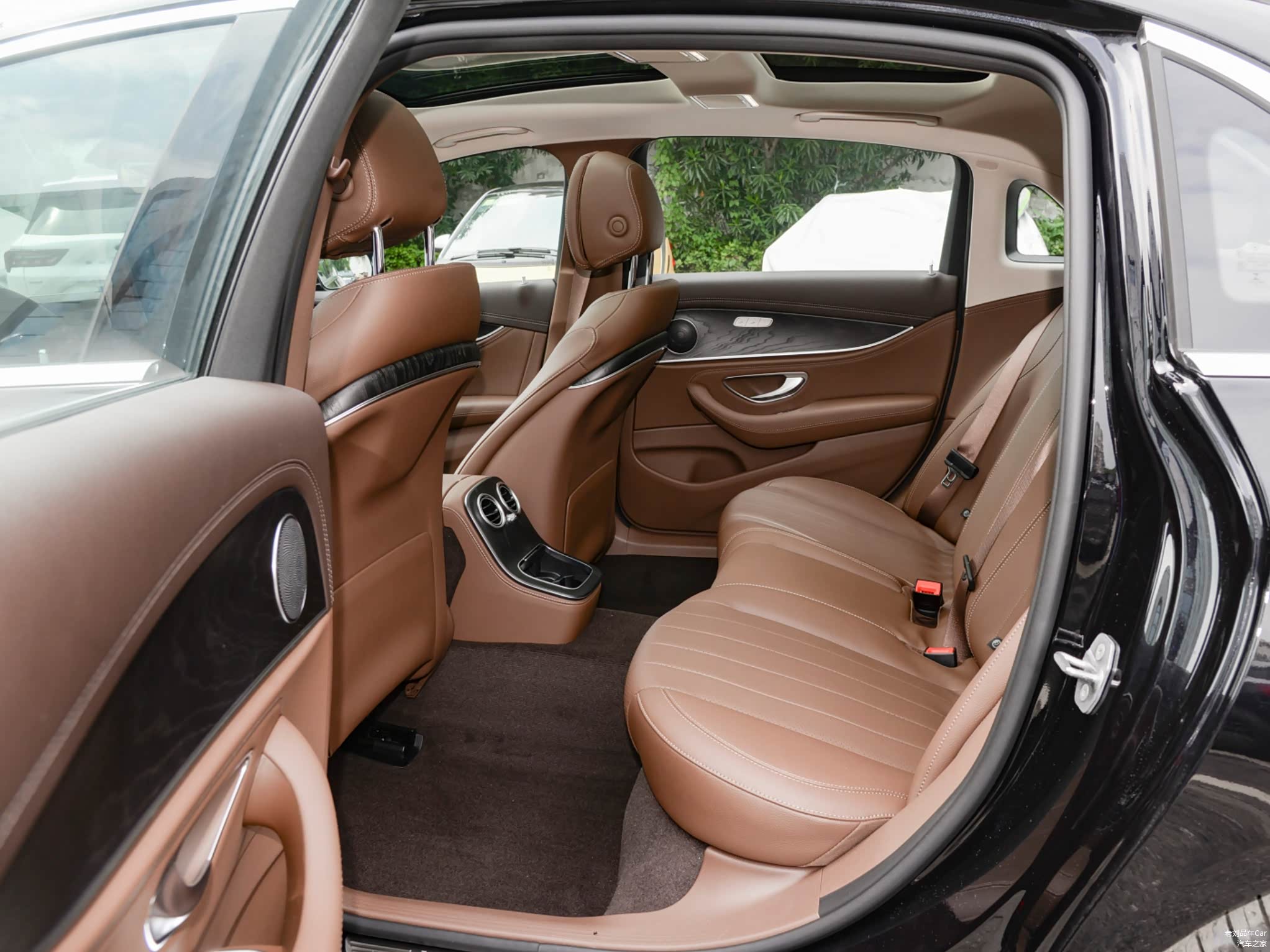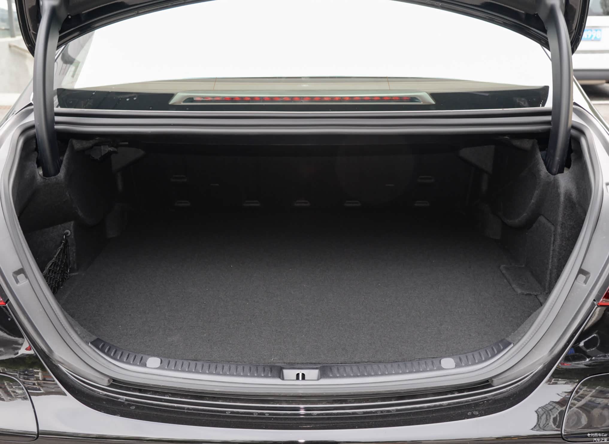 尾部依然还是比较圆润、优雅的线条,包括两侧大灯以及双边共两出的排气装饰口。不同之处在后保险杠两侧上方多了两个方形盖子,分别是快、慢充电口。之前很多车企会把充电口放在车头或者后翼子板上,而奔驰E350eL放在了正后方的车尾部,在充电时离充电桩很近,特别方便。还有个比较有意思的地方,就是整个后备箱空间要比E300小很多,地台也高了一些。原因在于它把电机放在了尾箱下面,这样就缩小了后备箱空间。再就是后桥增加了空气悬架,原因与电机也有千丝万缕的联系。