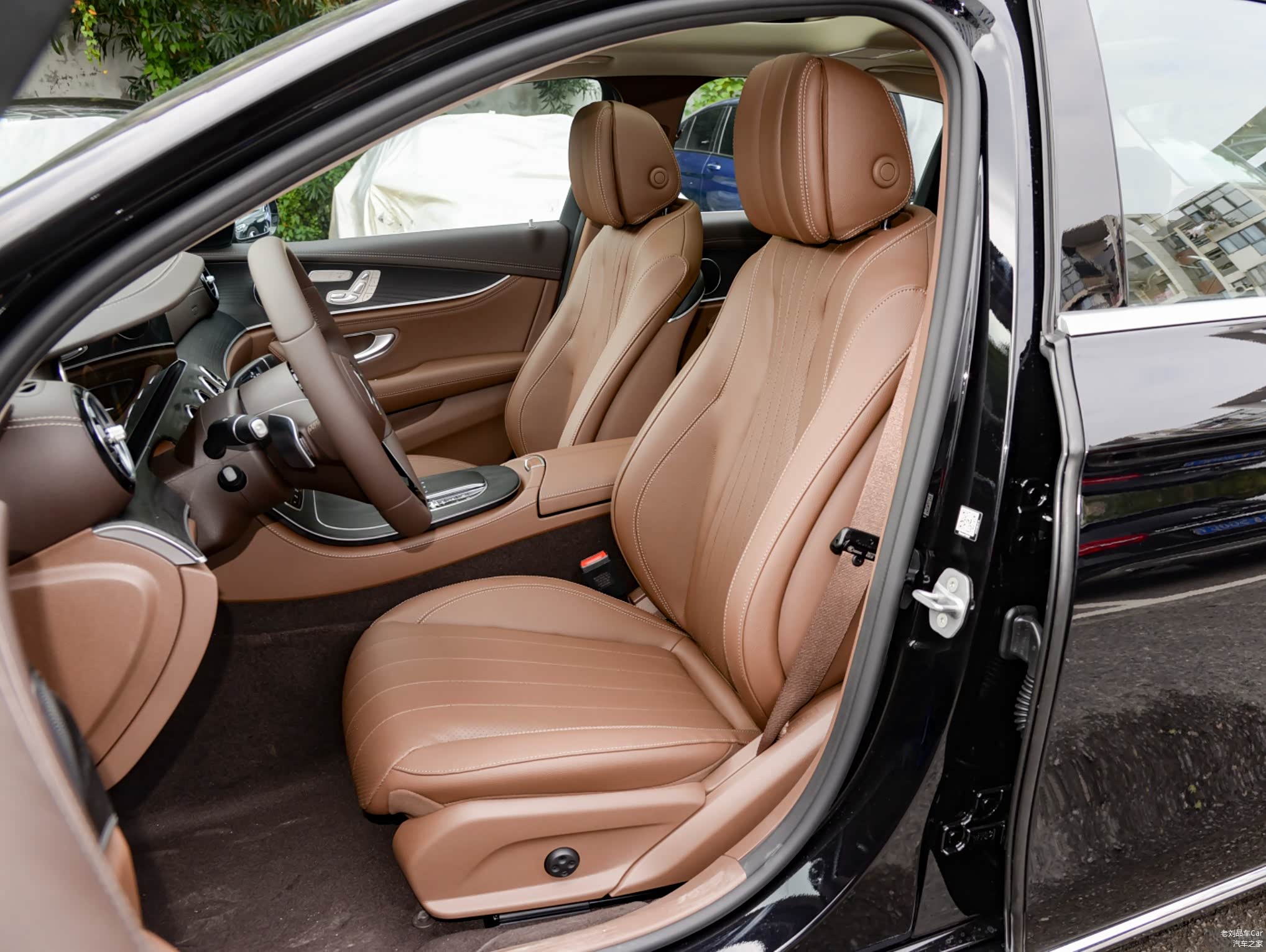 车内还保留了相当多的实体按键,比如门板上可以进行座椅调节,这是奔驰车经典的设计。空调控制按键等都在触手可及的地方,让驾驶者能非常轻松的去盲操,个人觉得比全部都放在车机里使用更加安全;同时还有CarPley车机互联,也可以把手机放在储物盒内进行无线充电,非常方便。其它的所有功能都能在屏幕上去操作,十分顺手、舒服。别看前排座椅位置比较低,其实腿部的承托很到位,坐垫的长短适中,开车时特别舒适;座椅靠背两侧的支撑也足够,虽然不是特别软,但坐上去非常舒服。