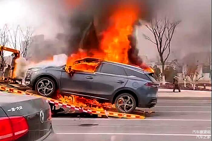就以这次的主角唐DM-i来说,近年来的起火自燃事故就不少见。比方说2022年1月26日,就有网友爆料称上海一辆比亚迪唐DM-i在拖车途中起火,这也真是巧了,情况和此次事故很相似,以至于小编开始还以为是同一事件,后经仔细辨认车牌号,确认是两起事故,这起事故最终导致该车被完全烧毁。