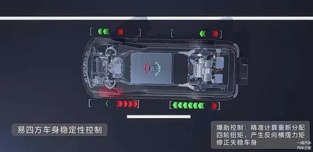 而仰望搭载的“易四方”系统,和燃油车的四驱存在较大的区别,根本不存在上述最浪费时间的分动箱相关步骤。只需通过布置在四轮上的轮速传感器和其他传感装置,对车轮转速、滚动阻力或轮胎气压值等参数进行毫秒级的运算。并通过中央控制器计算后,独立“指挥”单个车轮,实现从脱困、限滑、制动。
