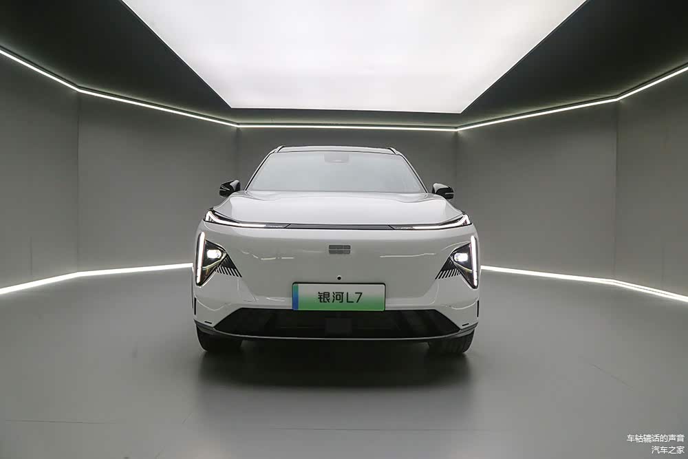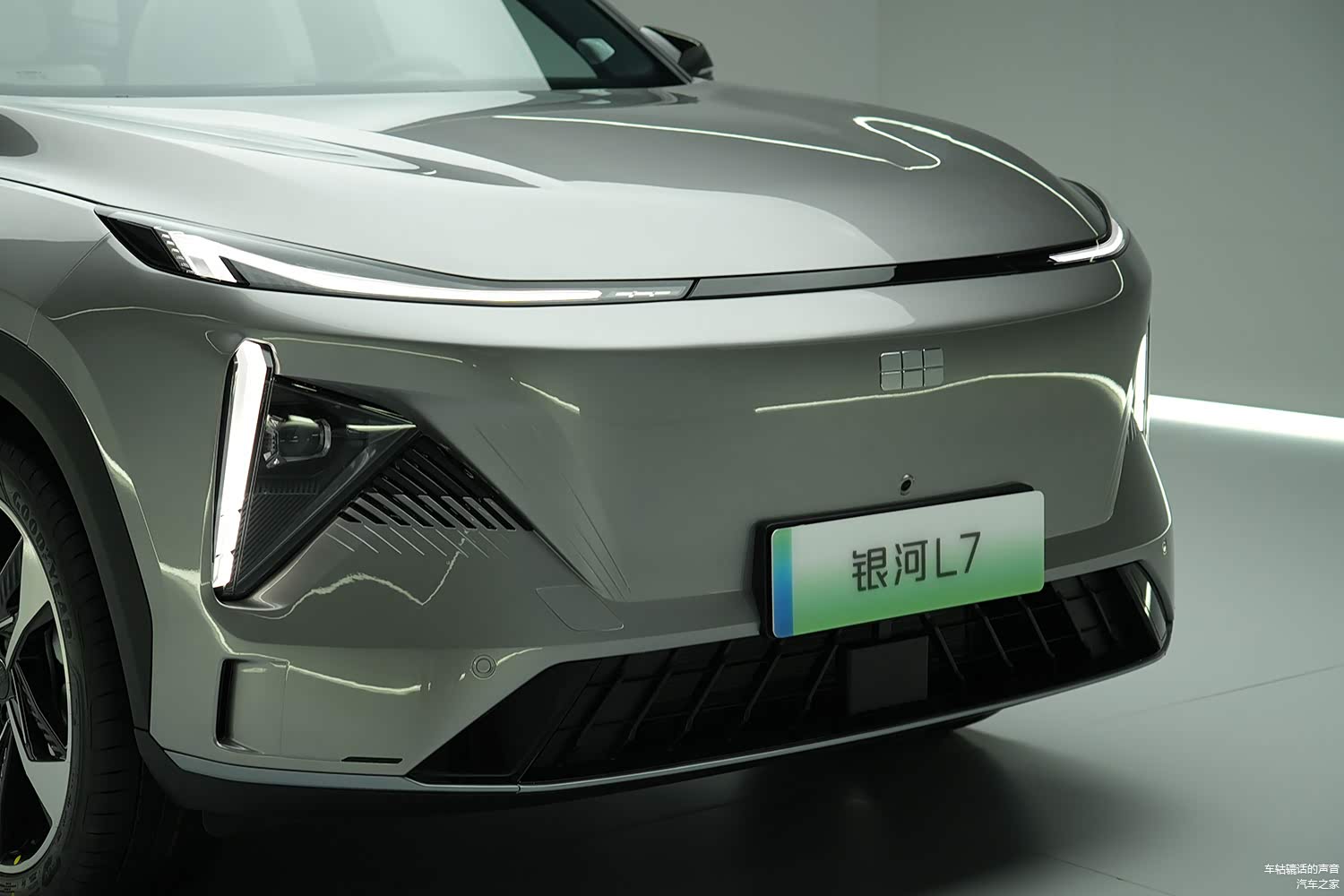 身为一款插电式混动车型,银河L7全面采用了新能源车型的设计思路,它采用了更接近于纯电动车型的封闭式前脸设计,并没有传统意义上的中网,前脸处最为显眼的就要算是分体式的大灯了,下方三角形区域的大灯很显眼,而上方接近贯穿式设计的LED日间行车灯则给它带来了一定的科技感和时尚感。