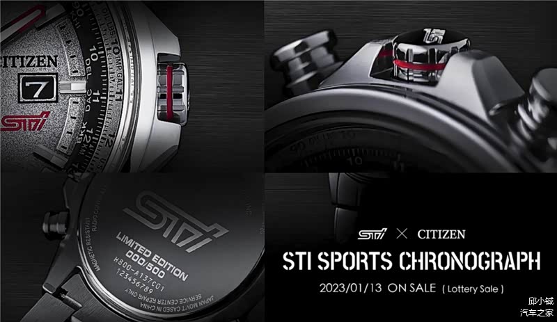 首先来看看这枚号称全球限量500枚的STI与西铁城的联名腕表。STI SPORTS CHRONOGRAPH(STI运动计时码表)在今年1月份日本官网通过抽签的方式进行发售,官方定价是77000日元,折合人民币约3935元,不到4千元。