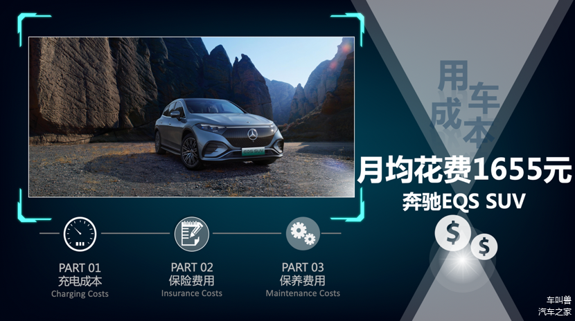综合了保险、保养以及充电费用,我们得到奔驰EQS SUV每年的开销大概在19862元,每个月的平均花费为1655元,整体的花费还是得益于纯电动车的身份显得非常便宜好养活。