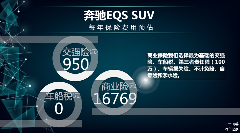 保险费用层面,我们以450+版本为例说明,商业保险我们仅仅以基础的交强险、车船税、第三者责任险(100万)、车辆损失险、不计免赔、自燃险、涉水险来计算,这几项的综合费用为17719元左右。