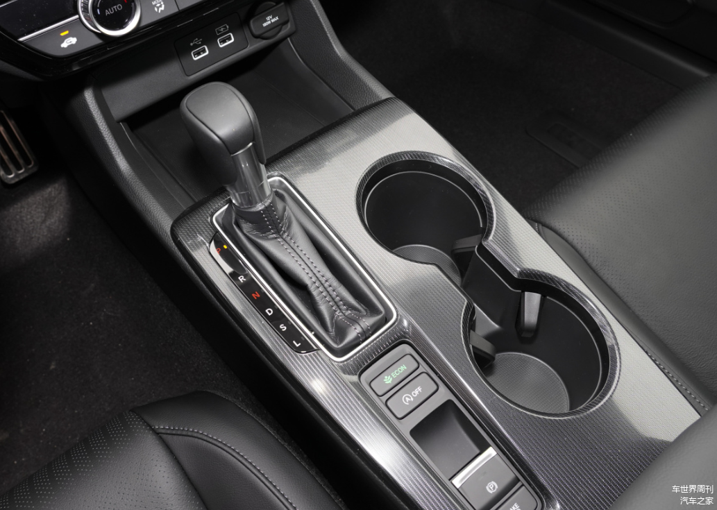 此外,换挡区域,不同版本车型也采用了不同的设计,其中,燃油版车型采用的是机械式挡把,混动版车型则采用了按键式电子换挡机构。