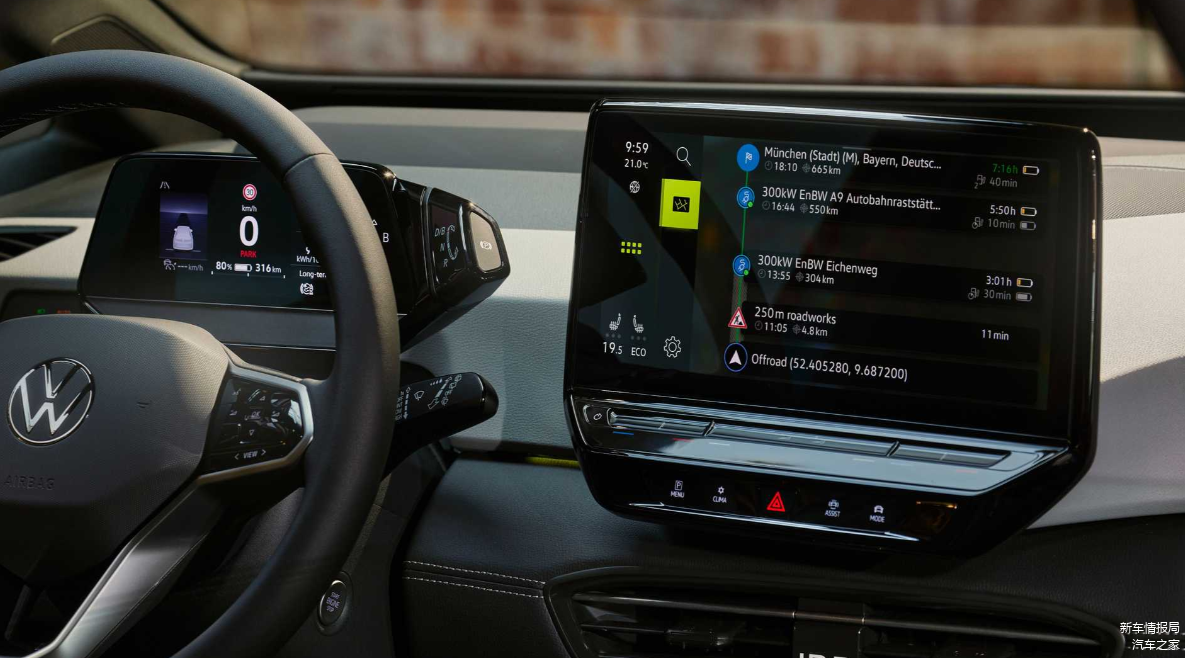 同时得益于MEB-Plus架构,新车不再采用分布式处理器,而是集中基于两台高性能计算机ICAS(车载应用服务器)作为主要组件,将统一处理各种数据,大大提升整车执行效率。