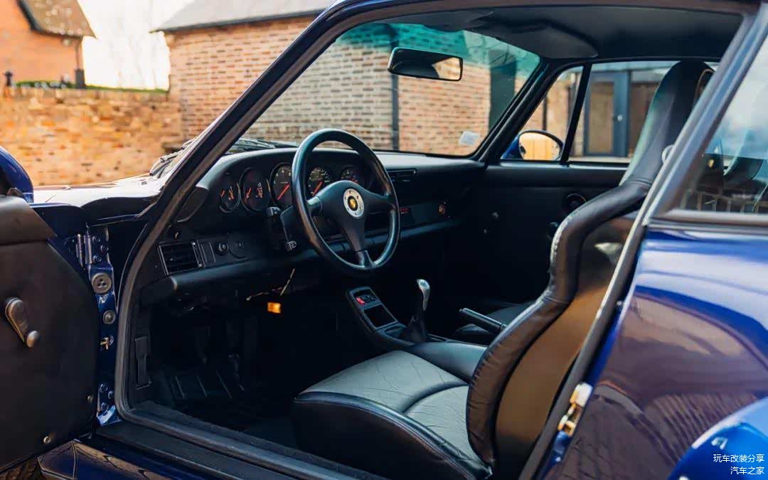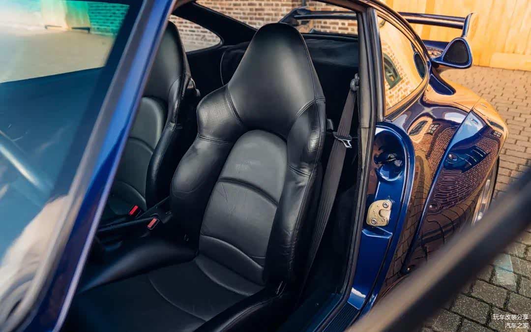 为了轻量化,993 GT2去除了电动车窗、安全气囊、收音机、空调等配置。而大部分街道版993 GT2都是银色车漆,仅有极少数选配了Sample Iris Blue Metallic特殊蓝色金属漆。