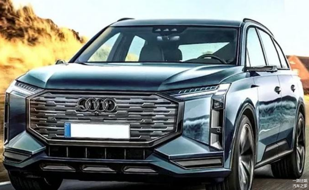 上图的这款车就是刚刚曝光的2024款的奥迪Q7,因为只是渲染图,所以目前也没有得到官方的证实。我们先看看这款车都给我们带来了哪些惊喜。在正面,新车的中网首次采用了8边形的结构布局,内置的鳞片状的设计带来了强大的气场,整个LOGO并没有采用可点亮的设计,反倒换成了镂空的造型。双侧的多层激光大灯与整个前脸完美的呼应到了一起,在大灯的下方还设计了竖排造型,部分还加入了可点亮的元素,可谓是设计感爆棚。此外新车的前包围也采用了相同的元素,所以就车头上看就能笼络到大量的粉丝。