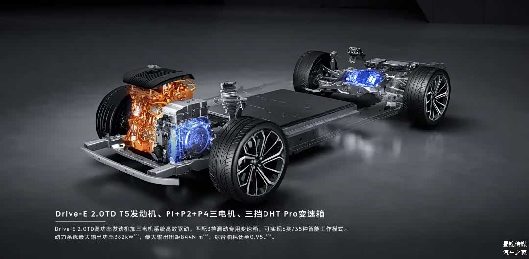 领克09 EM-P远航版则采用了比增程式技术更加复杂,也更为先进的LYNK E-Motive智能电混技术,它的动力系统由2.0TD高功率发动机、P1+P2+P4三台电机,以及混动专用三挡DHT Pro变速箱组成,通过这套高效的混动系统实现将纯电、混动、增程的三种驱动模式,做到了一车胜三车。