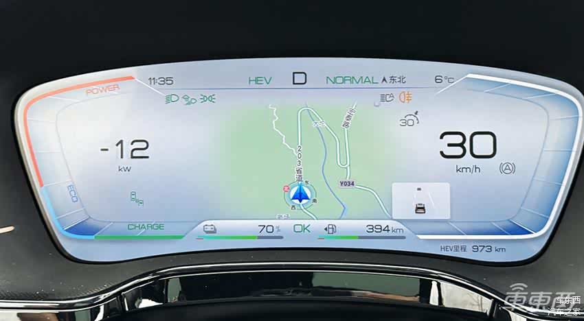 另外在驾驶体验中发现,唐DM-p的车内各项功能配置真的是拉得很满,比如包括HUD抬头显、仪表屏和中控拼组成的显示系统,很全面直观。