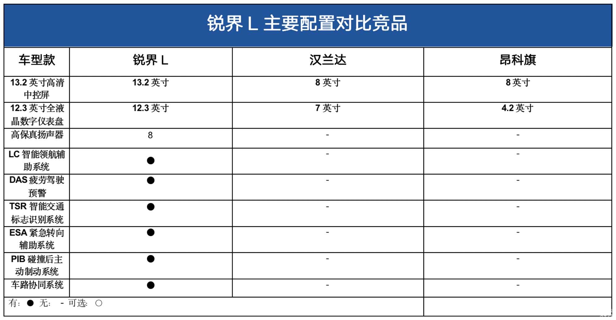 配置方面,新车配备车路协同系统、DAS疲劳驾驶预警、TSR智能交通标志识别系统等L2级别智能辅助驾驶配置,三区独立恒温空调、驾驶员座椅10向调节等舒适性配置。作为入门级车型对比同级,更具优势,具体如图。