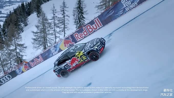 2019年,奥迪e-tron原型车凭借电动quattro全轮驱动技术,在奥地利滑雪胜地Kitzbühel挑战了角度高达85%的大倾斜度Hahnenkamm速降雪道,并成功登顶。