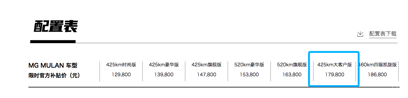 日前,笔者从上汽名爵官网获悉,名爵MG MULAN大客户版现已正式上市,售价为17.98万元。作为新增车型,新车针对功能配置进行了优化调整,CLTC纯电续航里程425公里。