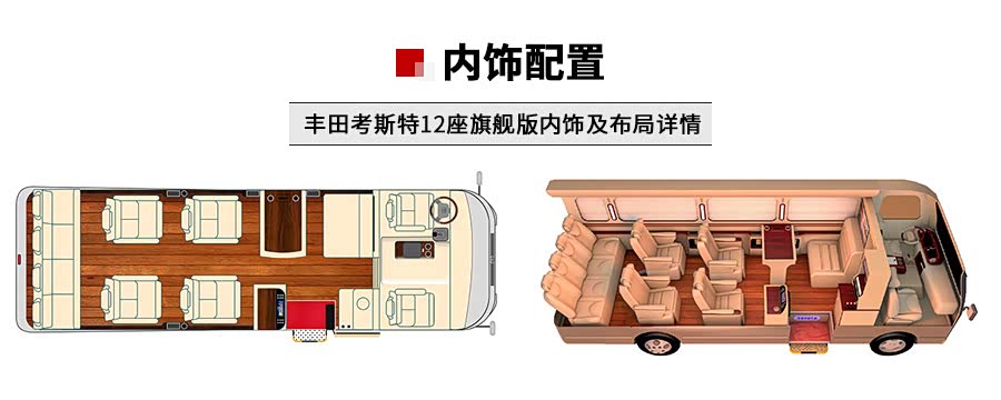 丰田考斯特是四川一汽丰田公司生产的一款中巴车,本身的座位数为10到23座,但是可以根据每个客户的不同需求定制成不同的版本,还可以根据需要选择不同的座位数以及增加各种配置,实现个性化定制改装。考斯特整体造形美观,内部改装布局充分考虑与丰田考斯特整车的平衡。