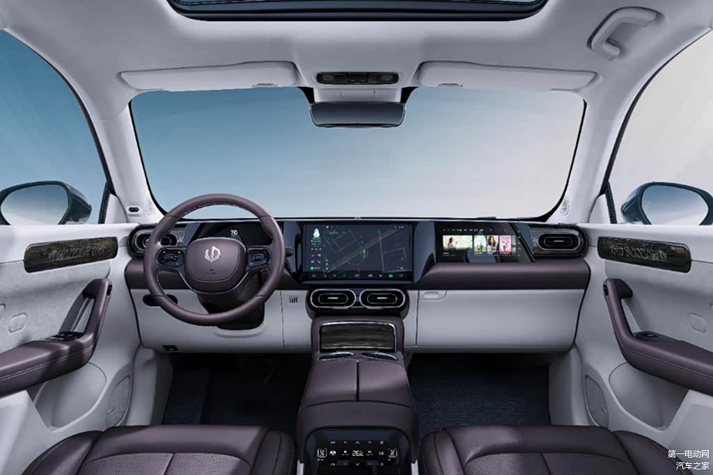 由于有奔驰参与车辆的设计,所以在车辆的多个部分我们都能够看到一些梅赛德斯的影子。座舱内部的乘坐空间比较充裕,能够轻松容纳5名成年人,后备箱的容积也还不错,装备一些基础的露营设备没有问题。根据不同车型,车辆将会拥有后窗隐私玻璃、真皮方向盘、真皮座椅、前排座椅加热、热泵空调、PM2.5 传感器智能香氛系统、脚踢式电动尾门等配置。