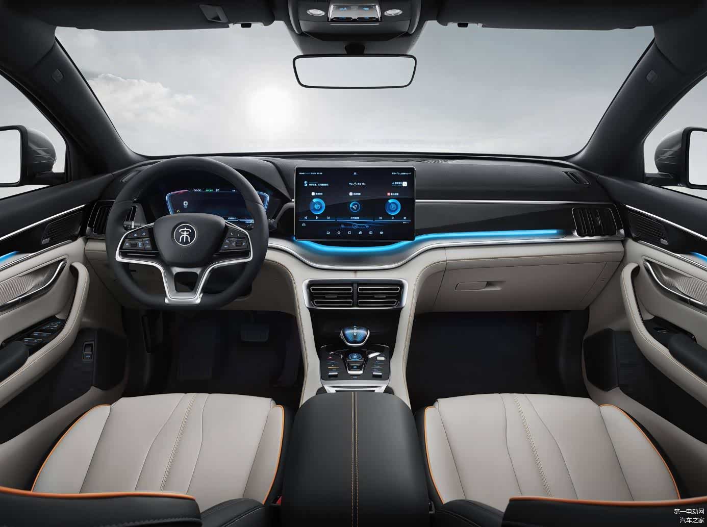 与老款一样,新车内饰依旧采用了大量软质皮革材质覆盖,撞色设计的内饰非常具有质感。全液晶仪表+中控屏的组合没有变化,不过新车采用了怀档的换挡机构,进一步释放了中央储物空间。同时还新增了50W手机无线快充、CN95空调滤芯、方向盘四向调节等配置。