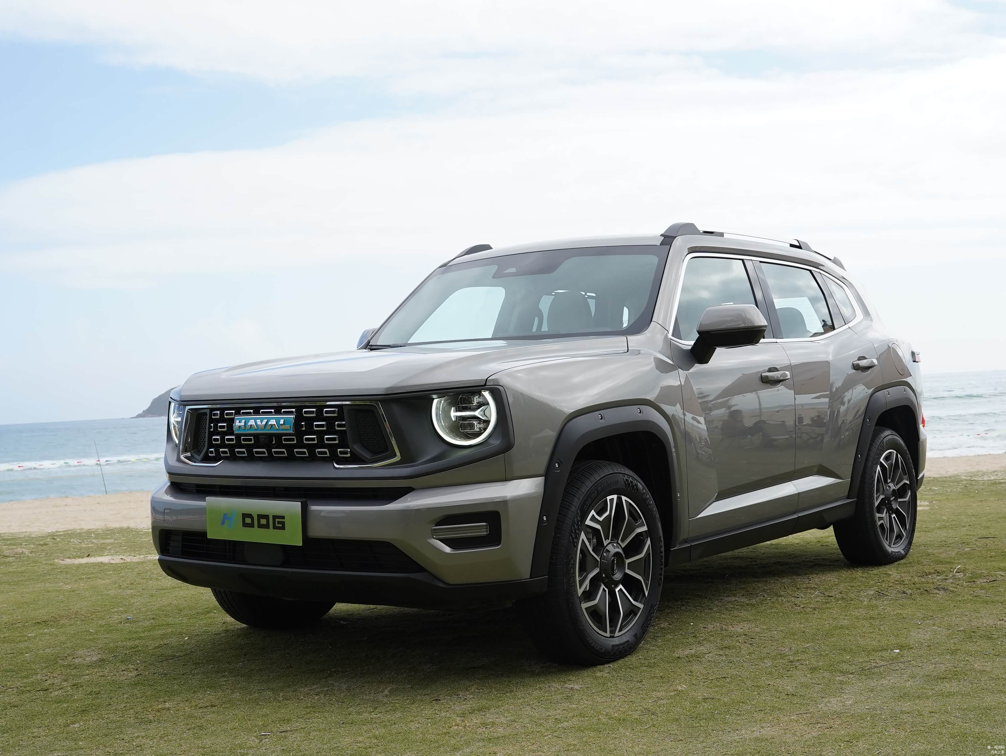 哈弗二代大狗新能源采用了相当个性化的设计语言,棱角分明的外观能够在第一时间吸引年轻消费者的目光,复古的圆形大灯加上轮眉的铆钉营造出鲜明的硬汉氛围。新车车身尺寸为4705×1908×1780mm,轴距达到了2810mm,接近角24°、离去角30°、纵向通过角19°,最小离地间隙200mm,具备同级领先的通过性。为了凸显自身的混动身份,哈弗二代大狗新能源还采用了蓝色的品牌标识。