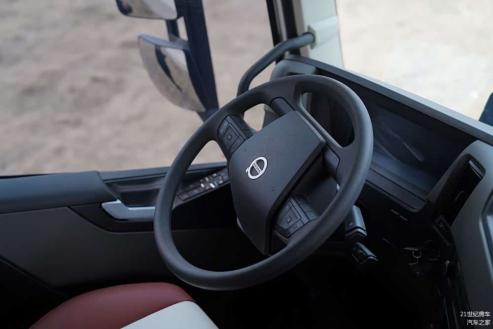 动力上搭载了一台排量达到了12.8L的柴油发动机,最大马力460Ps,峰值扭矩2300N·m,在900-1400转就能爆发最大扭矩,这对连接总质量达到44吨的车身来说还是必要的。
