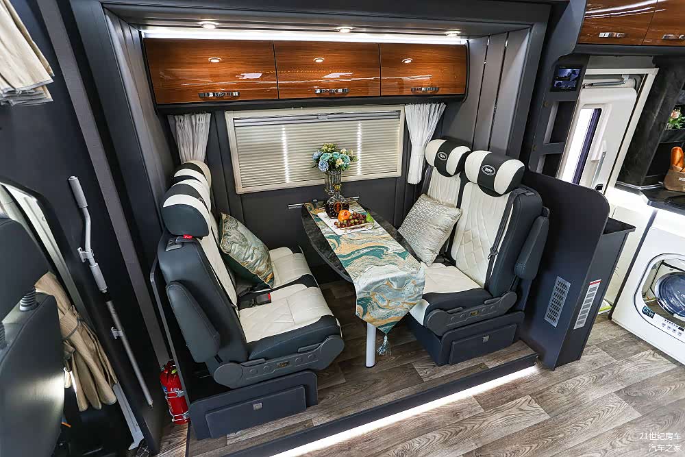 会客厅的侧窗尺寸达到了1104×904(mm),超大观景车窗带来极佳的车内视野,结构通过了ECE欧洲安全认证,在安全和隔热性有不错的保障。