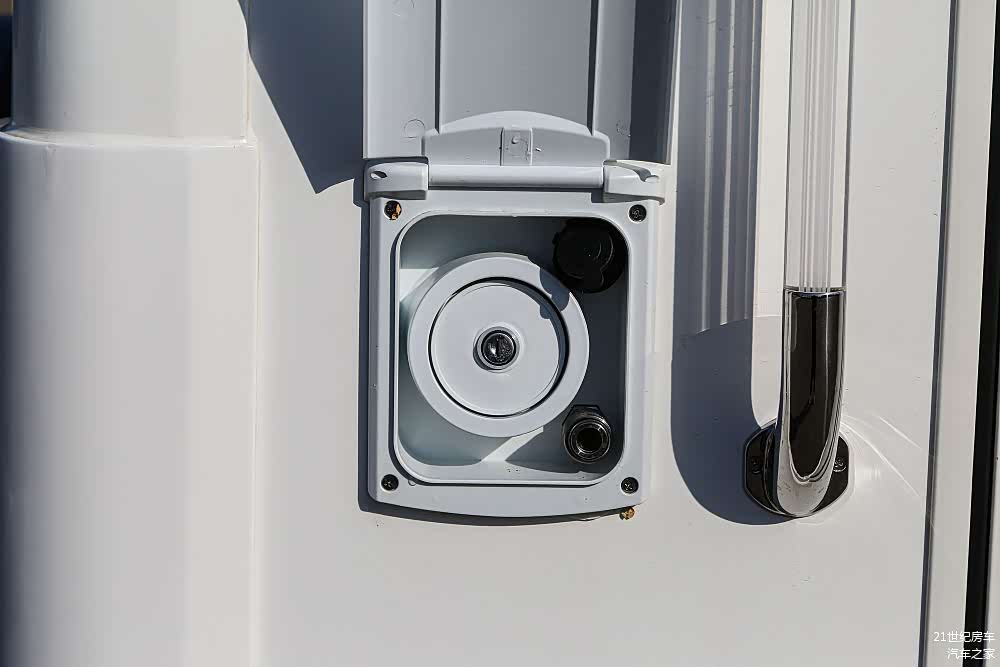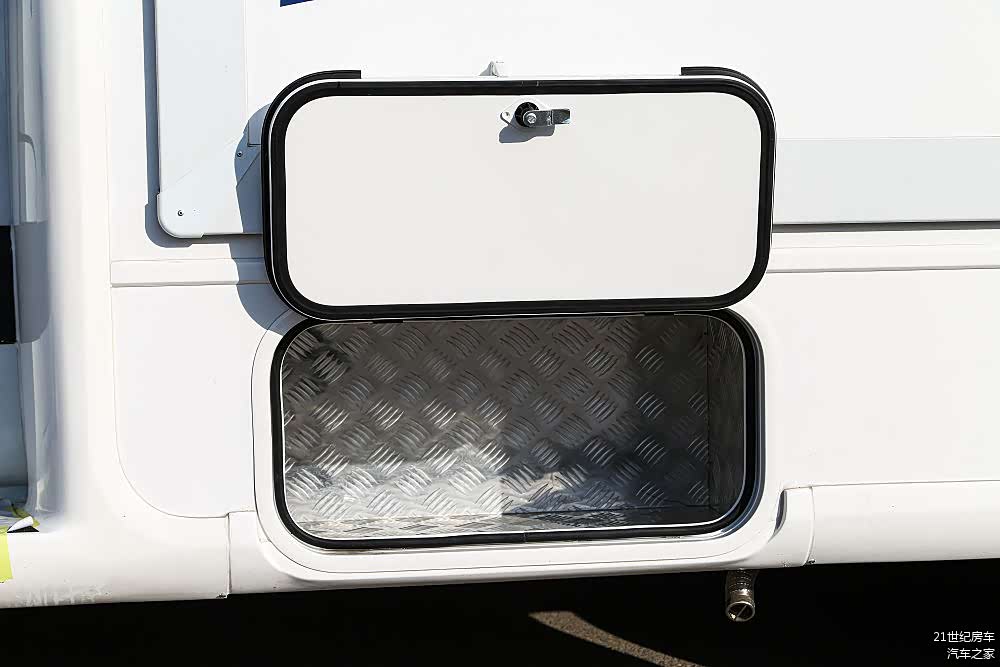 外置储物仓一律采用花纹铝板,相对密度小重量轻,铝合金密度约为铁的1/3,耐腐性能更好,相比市面同级别房车采用的薄铁板、玻璃钢、吸塑件等具有明显优势。